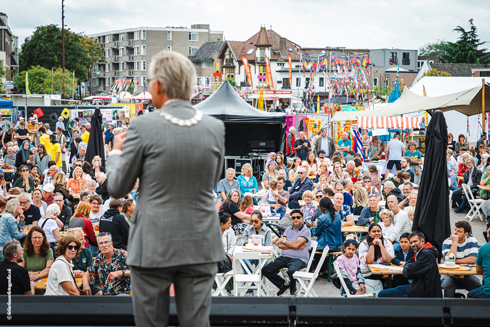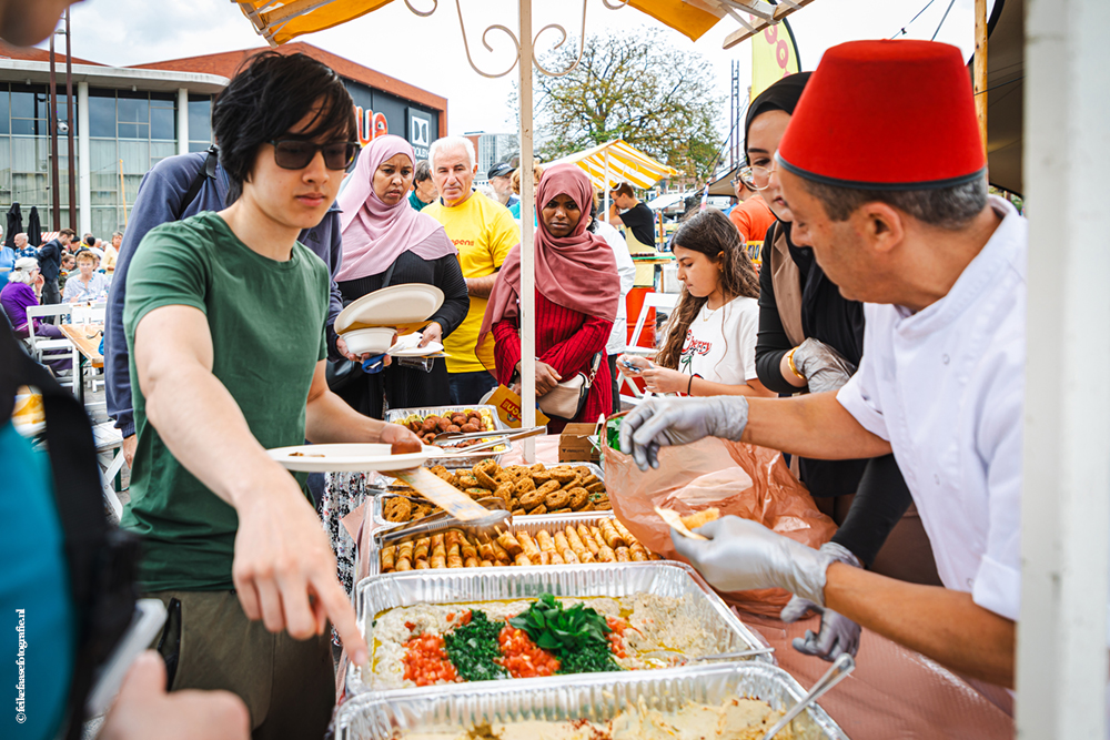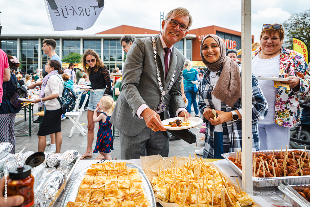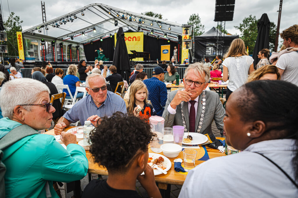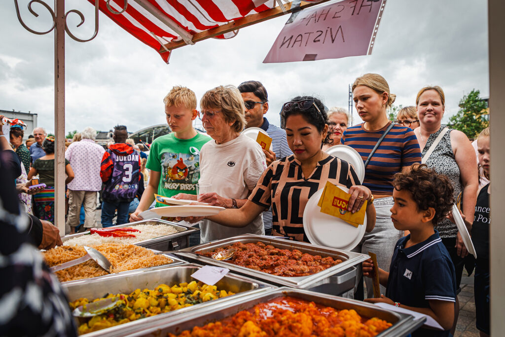Zaterdag 24 augustus 2024 op een afgeladen Marktplein hebben meer dan 600 Hilversummers genoten van een prachtige en heerlijke lunch. De diversiteit van de keukens die aan bod kwamen, is een prachtig voorbeeld van de rijke culturele mix die Hilversum zo uniek maakt. Het was inspirerend om te zien hoe ieder zijn of haar eigen achtergrond en tradities heeft ingebracht, waardoor er gezamenlijk een kleurrijk en smaakvol palet werd gecreëerd. Niet alleen genieten van heerlijke maaltijden, maar ook van de verhalen en de cultuur die achter elk gerecht schuilgaat.